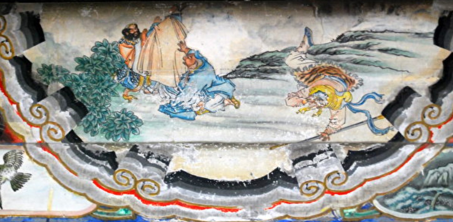 Tranh vẽ bốn thầy trò Đường Tăng trong hành lang Di Hòa viên, tái hiện cảnh “Tam đả Bạch Cốt tinh” (Ảnh: Khu vực công cộng)