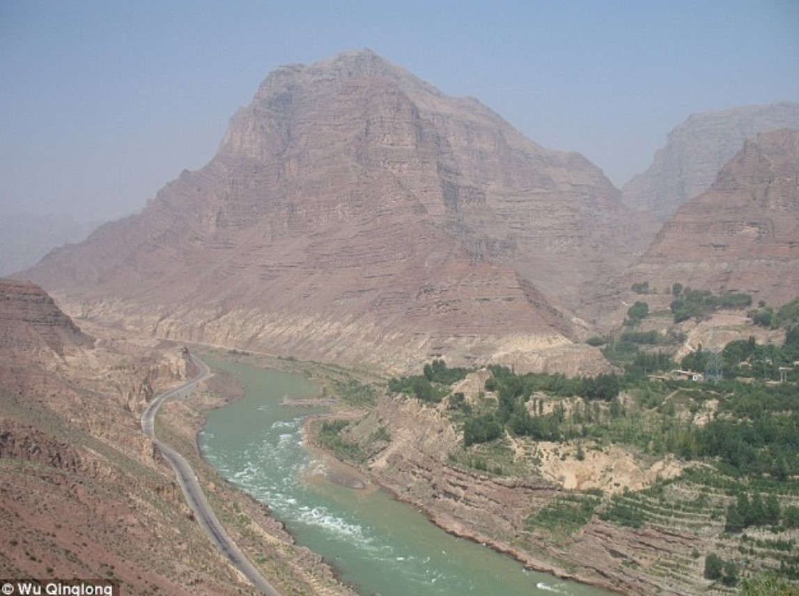 Hẻm núi Tích Thạch bên sông Hoàng Hà, nơi đã xảy ra vụ lở đất tạo thành một con đập lớn cao 200m tích tụ nước và sau đó đổ ập xuống đã tạo nên Đại hồng thủy Trung Quốc 4000 năm trước. (Ảnh: Wu Qinglong)