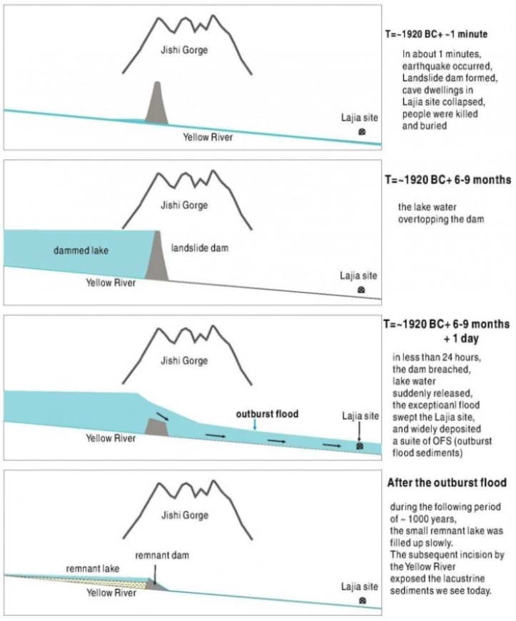 Các nhà địa chất cho biết đá trầm tích cho thấy đã có một trận lụt lớn xảy ra vào khoảng năm 1920-1900 trước Công nguyên - một giai đoạn trùng với thời điểm quan trọng trong lịch sử Trung Quốc. Đây là thời kỳ đồ đồng và văn hóa Earlitow mà nhiều nhà khảo cổ liên kết với triều đại nhà Hạ bắt đầu.