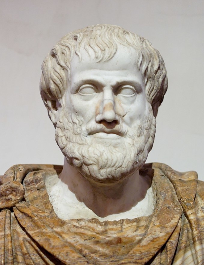 Bản sao bằng đá cẩm thạch của bức tượng chân dung Aristotle, chế tác bởi Lysippos, c. 330 TCN, với phần vải alabaster hiện đại. (Ảnh: wikimedia)