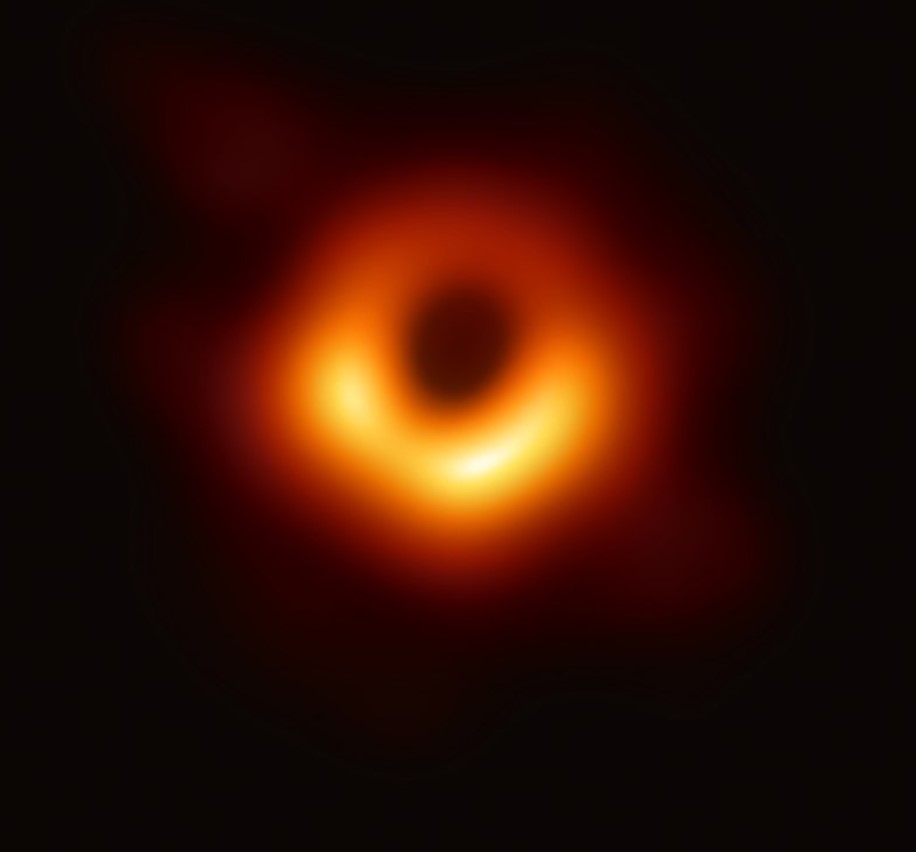 Quả cầu photon nằm trong bóng tối (có bán kính gấp 2,6 lần bán kính Schwarzschild). Phát xạ vô tuyến từ đĩa bồi tụ xung quanh lỗ đen siêu lớn M87 * được chụp năm 2017 bởi Kính viễn vọng Chân trời Sự kiện. (Ảnh: wikimedia)