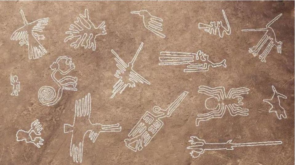 Sa mạc Nazca nổi tiếng bởi các hình vẽ khổng lồ trên mặt đất. Ảnh: Baidu