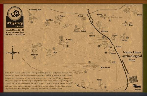 Mặc dù tư liệu cổ ghi chép về cuộc sống ở Nazca không nhiều, song những thổ dân từng sinh sống nơi đây cũng kịp để lại dấu tích về sự tồn tại của mình, được cho là thể hiện qua hình vẽ khổng lồ trên sa mạc.