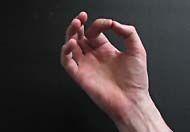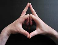 Đặt tay trước ngực và bụng. Hai ngón tay giửa thẳng, chạm đầu ngón tay vào nhau, hướng ra (xem hình). Các ngón khác uốn cong chạm vào nhau. Ngón cái chạm đỉnh và hướng vào bạn. Tập trung tư tưởng vào Luân xa “Mắt thứ 3”. Nằm giửa hai chân mày.
