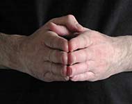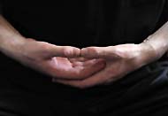 Đan ngững ngón tay vào nhau, hai ngón cái châu đầu vào nhau, kéo nó lên một chút. Tập trung tư tưởng vào Luân xa Yết hầu.
