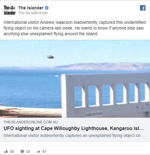 UFO này cách bờ biển khoảng 200 mét và không được cho là máy bay hay trực thăng. Những người dùng trên mạng xã hội cho rằng nó có thể là một con chim.