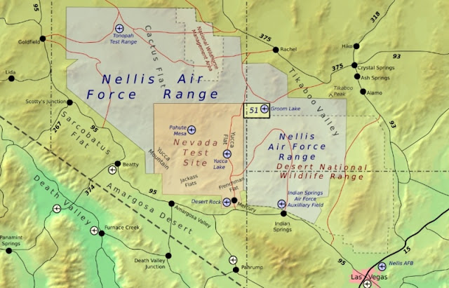Khu vực 51 nằm trong địa phận của Khu vực thử nghiệm Nevada (Nevada Test Site) (Ảnh: Wikimedia)