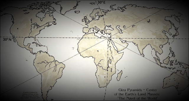 Chúng ta biết rằng Đại Kim tự tháp Giza nằm ở trung tâm địa lý của Trái đất (hoặc xấp xỉ), tức điểm trọng tâm của tất cả các vùng đất trên hành tinh (xem ảnh). Không giả thuyết nào có thể giải thích được điều này nên đa số đã phớt lờ hoặc xem nhẹ nó. Nếu kim tự tháp thực sự được xây dựng để làm ngôi mộ, vậy tại sao vua Khufu lại chọn vị trí đặc biệt này? Bên cạnh đó, vua Khufu đã mất bao lâu để thăm dò Trái Đất và chọn địa điểm xây dựng?