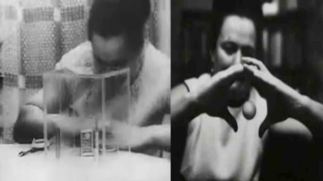 Kế đến, bà Nina sử dụng sức mạnh tâm linh để tách riêng lòng đỏ và lòng trắng trứng rồi di chuyển chúng sang hai đầu đối diện của bể nước.