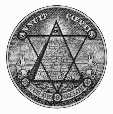 Biểu tượng này do chính Adam Weishaupt, người sáng lập Bavarian Illuminati tạo ra vào ngày 1/5/1776 tượng trưng ở chân kim tự tháp là chữ số La Mã MDCCLXXVI. Dòng chữ Latin ở phía trên “Annuit Coeptis ” nghĩa là “Thông báo về sự ra đời của” và dòng chữ bên dưới “Novus Ordo Seclorum” có nghĩa là “Trật tự thế giới mới” . Vậy nghĩa của nó là: “Thông báo về sự ra đời của Trật tự Thế giới mới”.