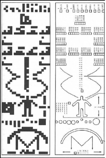Quan sát bức hình trên chúng ta có thể nhận thấy những sinh mệnh này cũng biết đến hệ đếm thập phân, cũng như hệ đếm nhị phân vốn được dùng để viết thông điệp. Dòng đầu tiên này không có sự khác biệt giữa thông điệp gốc và thông điệp phản hồi.
