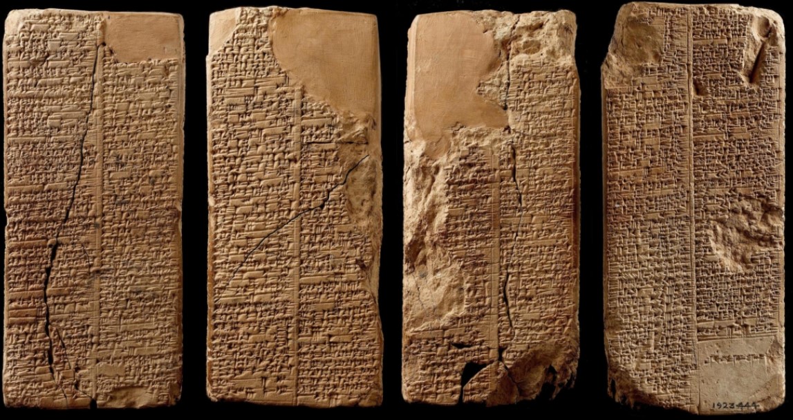 Mảnh đầu tiên của tác phẩm hiếm có và độc đáo này là một tấm hình nêm khoảng 4.000 năm tuổi, được học giả người Mỹ Hermann Hilprecht tìm thấy vào những năm đầu thế kỷ 19, tại khu vực cổ Nippur. Sau đó, ít nhất khoảng 18 mẫu tương tự đã được phát hiện.