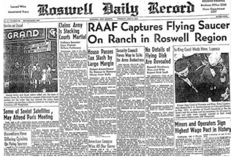 Vào ngày 8/7, tờ "Roswell Daily Record" của Roswell đã đăng một bản tin được cho là của chỉ huy căn cứ - Đại tá Langchard với tuyên bố rằng không quân đã tìm thấy một chiếc đĩa bay và nó đã rơi xuống Bligh gần Roswell. Sau đó những phần còn lại của vật thể rơi này đang quân đội thu thập và được gửi đến trụ sở cấp cao hơn để giám định.