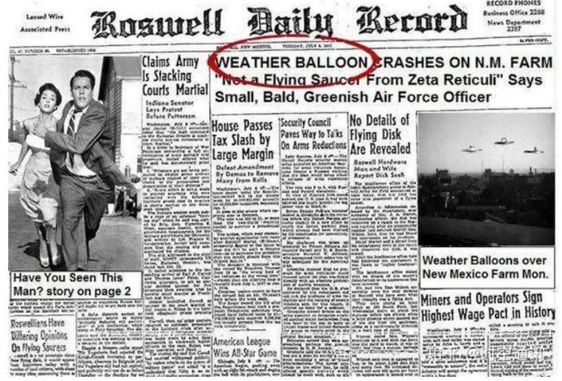 Sau khi sự cố Roswell xảy ra, để tránh sự lên án của dư luận, quân đội đã bịa đặt những lời nói dối về việc phát hiện ra đĩa bay, người ngoài hành tinh hay những tin đồn để che giấu đi sự thật.