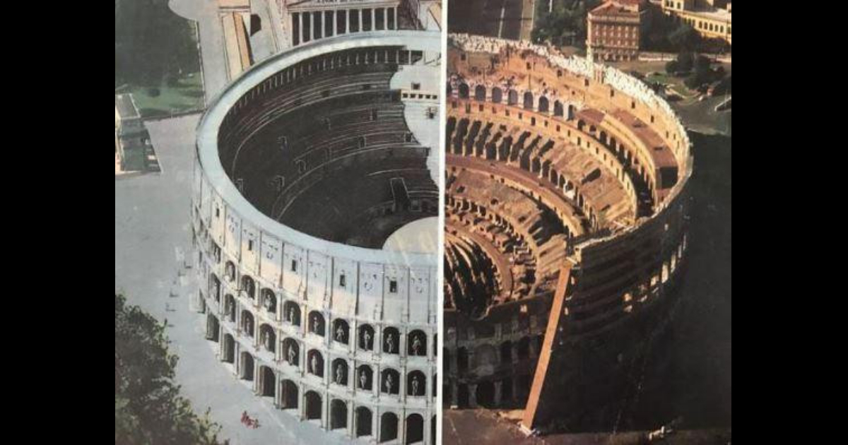 Ảnh mô phỏng Đấu trường La Mã xưa và nay.