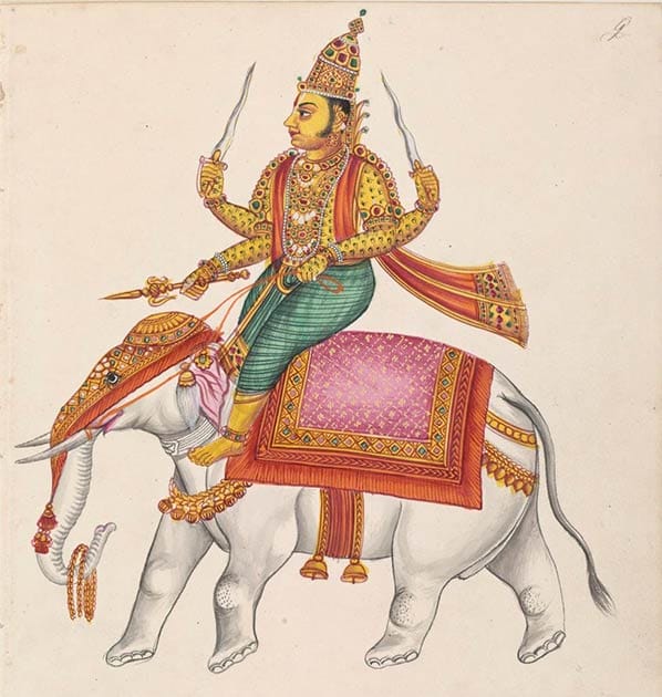 Sau khi Cuộc nổi dậy của người dân Ấn Độ năm 1857 bị dập tắt, Quân đội Anh đã tìm cách dạy cho những kẻ nổi loạn trong tương lai một bài học và họ đã cướp phá một cách có hệ thống hàng trăm ngôi đền, đền thờ và cung điện. Lính Anh đột kích vào những căn phòng thiêng và lấy cắp nhiều tấn báu vật cổ của Ấn Độ. Một trong những ngôi đền bị lục soát này là Đền Indra ở Cawnpore (Kanpur), thờ thần Indra, vị thần chiến tranh và giông bão của đạo Hindu người cưỡi trên lưng voi trắng và mang theo một tia chớp.