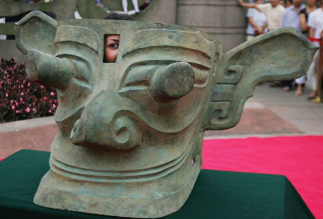 Đầu đồng được khai quật ở Tam Tinh Đôi, Quảng Hán, Tứ Xuyên (ảnh: ShutterStock).