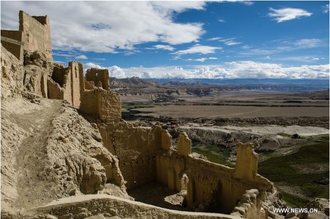 Tàn tích của vương quốc Guge nằm trên một ngọn núi ở làng Zhabran, thuộc khu tự trị Tây Tạng của Trung Quốc.