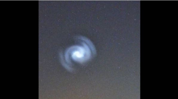 Một luồng sáng xoắn ốc màu trắng khổng lồ bí ẩn xuất hiện trên bầu trời đêm nước Anh. (Ảnh chụp màn hình video)